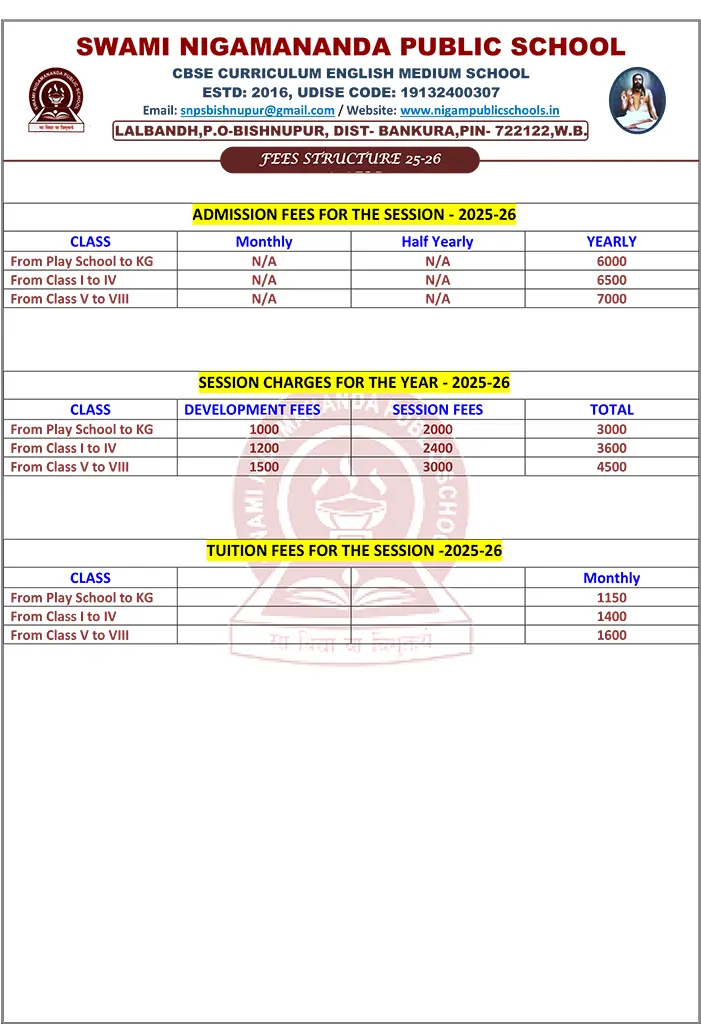 Note: Rs.500/- will be added as registration to the Admission fees for each new Student (One Time).