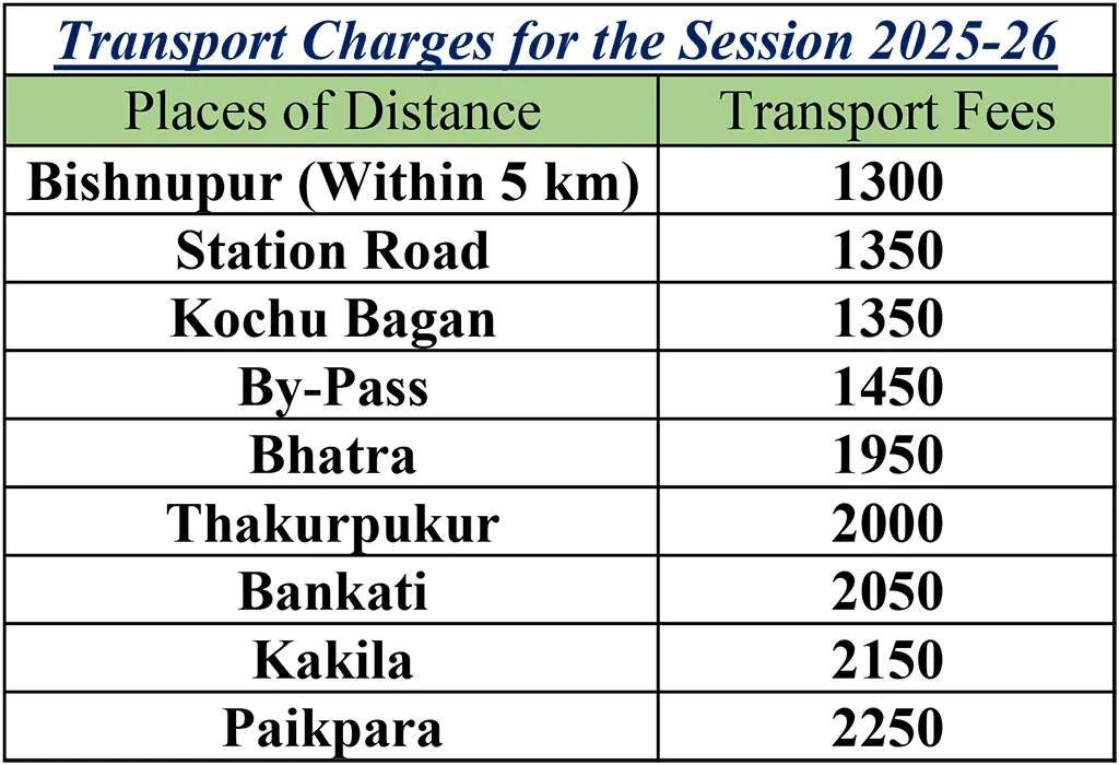 Transport Service: School Bus & Pool Car are available for those students who are willing to take paying required fees